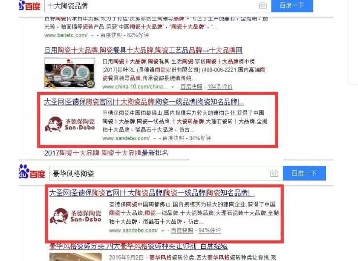 對“家裝裝修設計陶瓷品牌、陶瓷佛山瓷磚品牌品牌、佛山陶瓷品牌、中國陶瓷品牌、高檔陶瓷品牌、豪華風格陶瓷、陶瓷著名品牌、高端裝修陶瓷、勞拉”等一批消費者常用的關鍵詞持續SEO優化,這些關鍵詞目前已優化到百度搜索第一頁(只限電腦端搜索排名),同時增加“官網”標志,增加網站的權威性與公信力,增加百度錄入搜索的排名度。