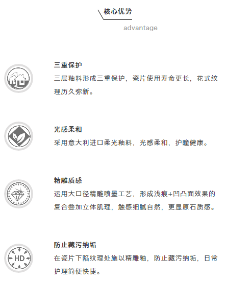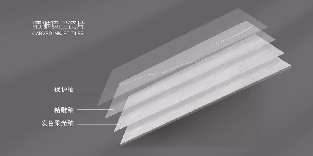 設計師把人們內心對于詩意的向往與客觀現實的呈現進行碰撞,設計出全新的精雕噴墨瓷片,還原空間的的自然之美,為生活注入美感與藝術。